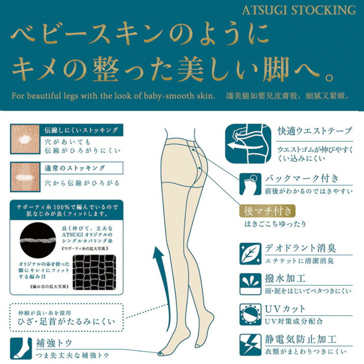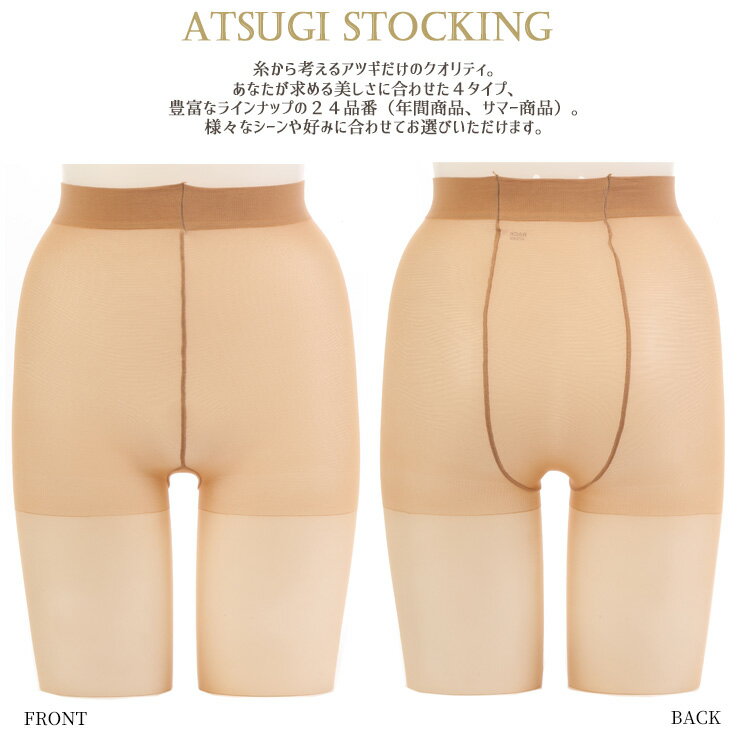 サイズ JM〜L(身長:150-165cm、ヒップ:95-113cm) 特徴 ATSUGI STOCKING(アツギストッキング) 糸から考えるアツギだけのクオリティ。