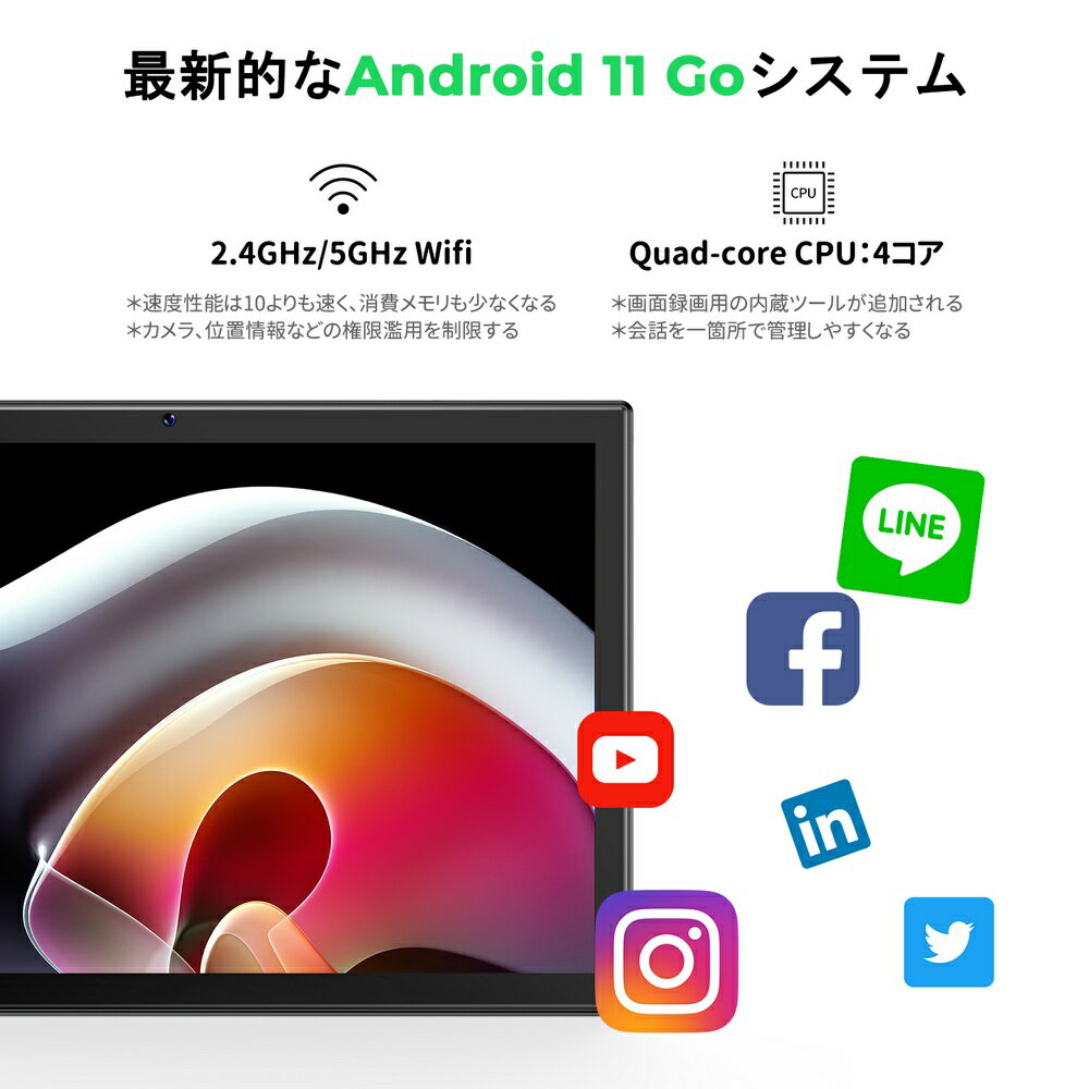 【最新Android11タブレット】 タブレットP10は新世代のAndroid 11システム(Go edition)を搭載されており、便利なユーザーインターフェースでより快適な操作が楽しめます。