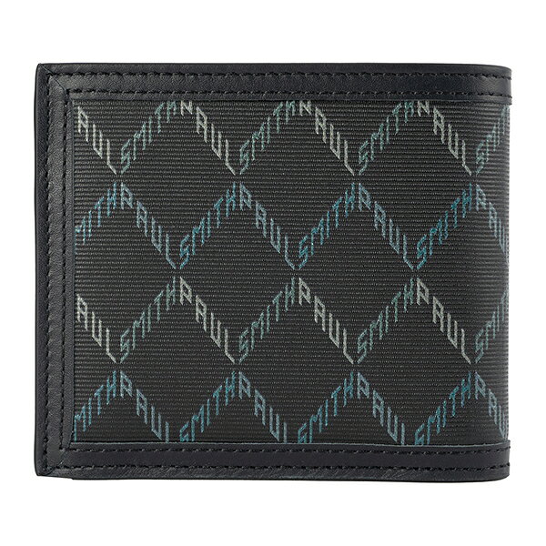 ポールスミスのロゴをクロスさせた幾何学模様がスタイリッシュな印象の二つ折り財布。